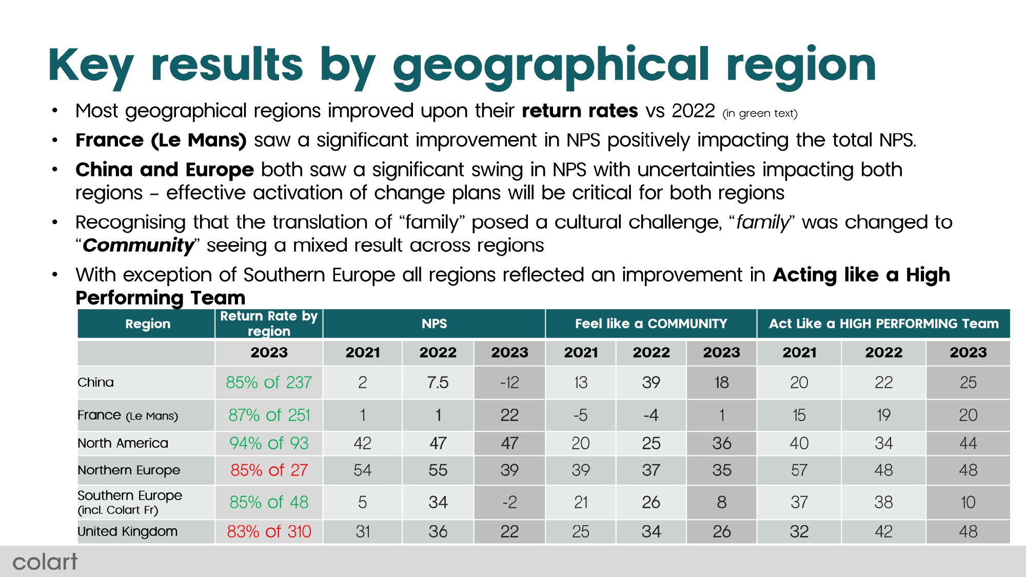 This table provides this plus includes some supporting commentary. And, it doesn't end there. We will work with each region to interpret better and then act on the findings.