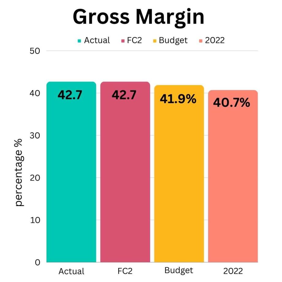 Gross Margin of 42.7% increased by 1.9ppt vs 2022 as a result of: