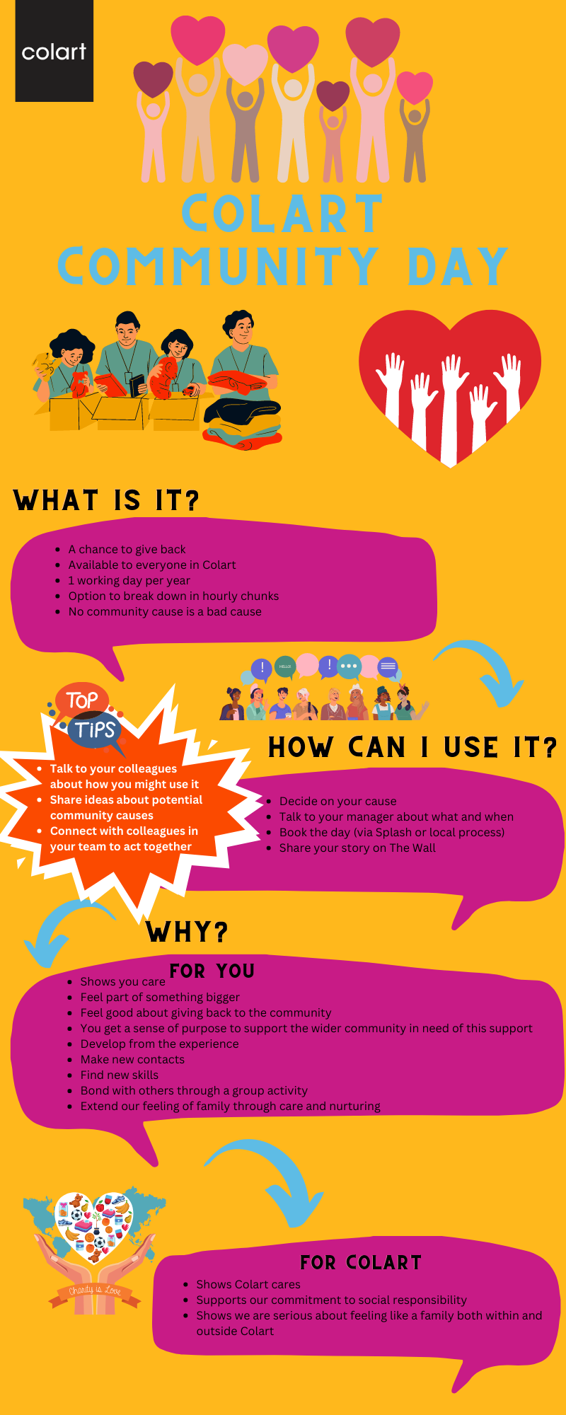 1. We really want everyone to take their Community Day no matter where you are in the Company…..Colart cares and this is your chance to show you care. Being part of something bigger with a sense of purpose always feels good!