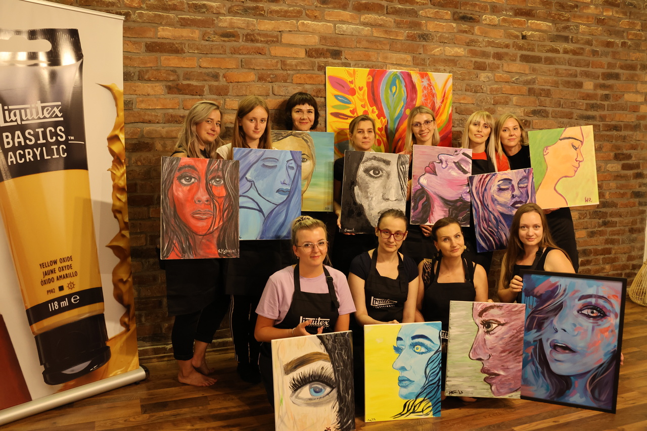 Last Friday, as a sponsor, we had the honor to participate in acrylic paint workshops, which were conducted by Sylwia Doktorczyk, who cooperates with us. Sylwia has been painting with our paints for years and we have been trying to support her talent for a long time. 10 women had acrylic paints in their hands for the first time and, under the supervision of Sylwia, they created paintings on the subject of “woman”. Workshops will probably be held more often, of course using Liquitex or Winsor & Newton paints. Thank you very much Jakub Kopek for your commitment and our company for the opportunity to donate paints for this event.