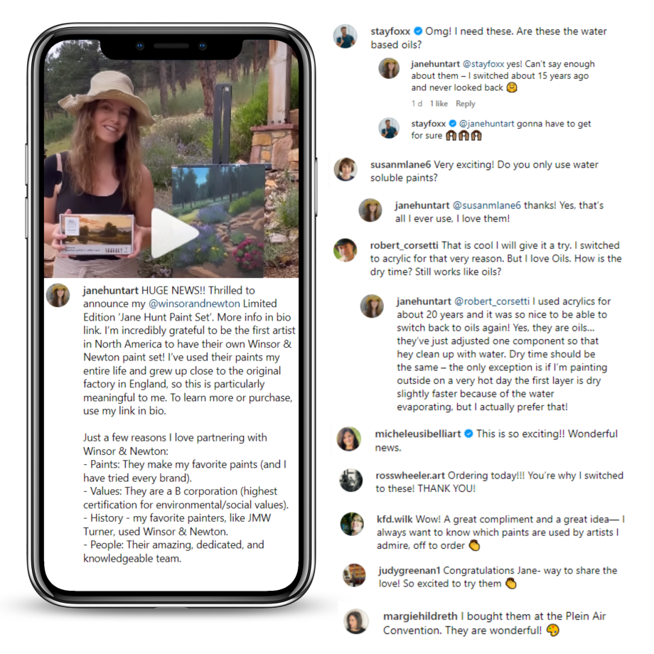 Hello, I’m excited to share an update on the recent launch of the Jane Hunt Set in NA. We collaborated with artist Jane Hunt to launch an exclusive set of her favorite AWMOC colors. The objective was to test the viability of Artist Sets from both marketing and commercial perspectives: increase brand reach, loyalty, and signal mutual trust between brand and artists, but also offer a unique, exclusive and valuable product offering on brand.com.
