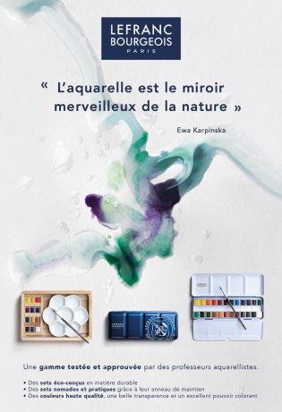 For the campaign, Lefranc Bourgeois has decided to partner with Ewa Karpinska, a well-known artist born in Poland in 1962 and based in France. She is one of the pioneers of the watercolour revival in France and extremely well respected as a technical referent by international watercolour societies.