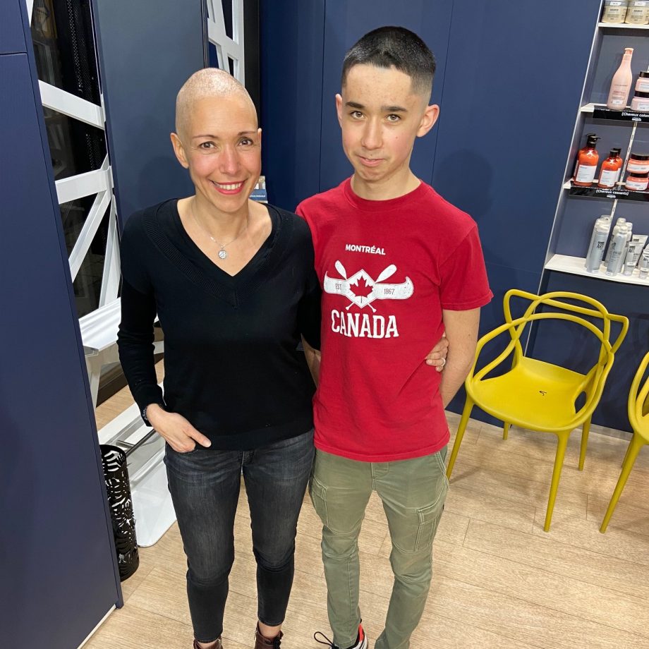 Voilà. Aujourd’hui, je tiens aussi ma force de mon entourage. Mes enfants. Mon garçon Romain qui m’a accompagnée et a coupé ses cheveux très courts le jour où j’ai décidé de raser mon crâne.