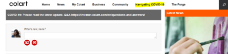 In this site, which can be found on the Intranet, you will be able to find a variety of information related to COVID-19. This includes: