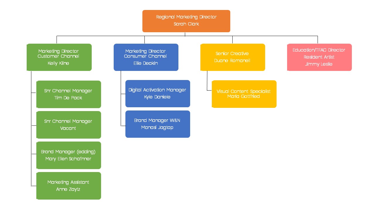 2. Consumer Channel - led by Ellie Deakin responsible for everything that relates to our local North America direct to consumer programmes, including management of Brand.com, consumer shows/events and partnerships. The team reporting to Ellie will be;