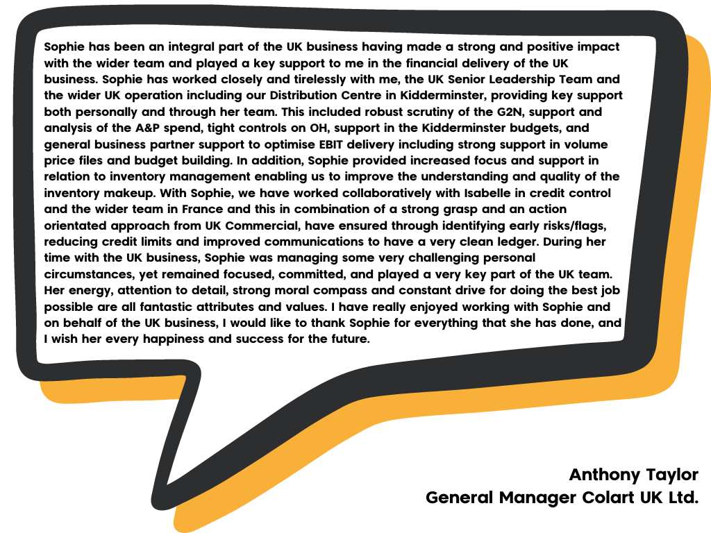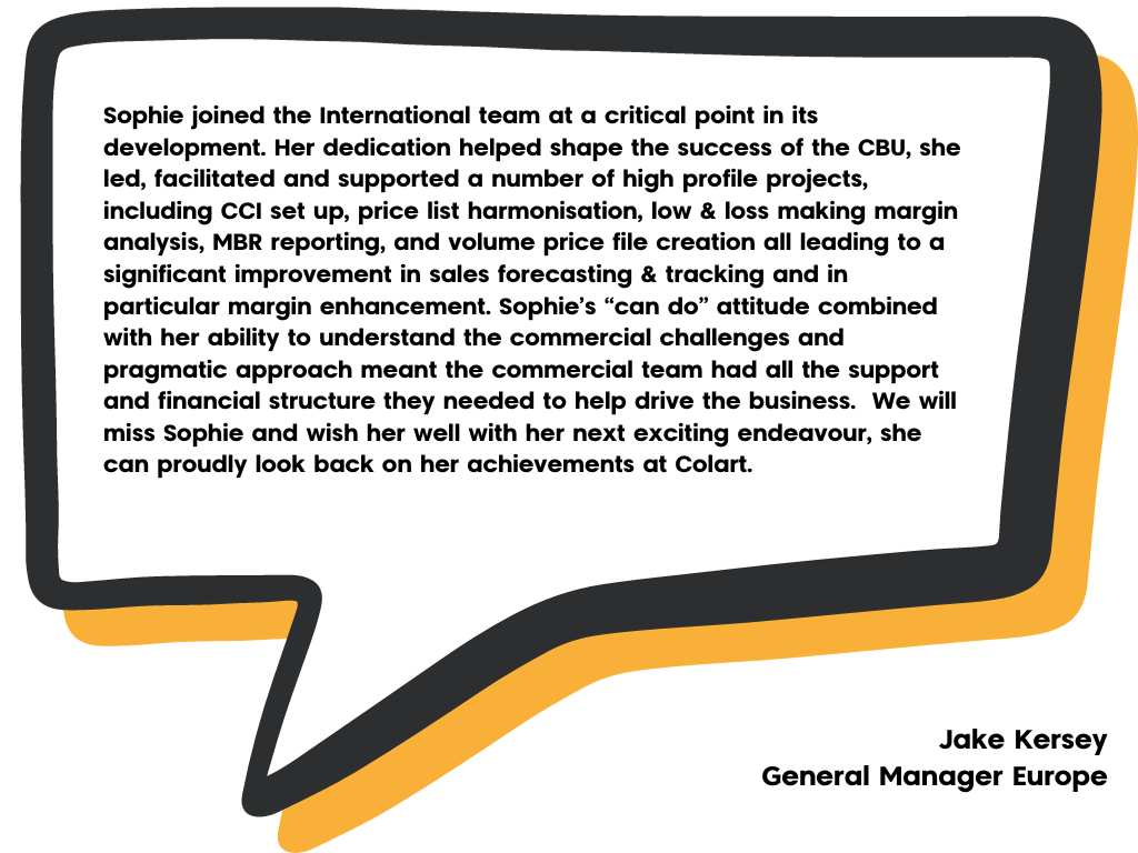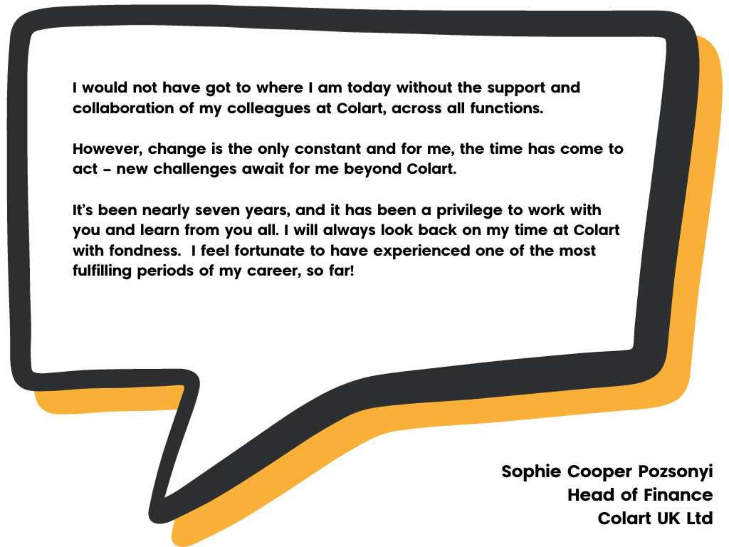 Sophie Cooper Pozsonyi, Head of Finance for the UK Business Unit, Colart UK Limited, will be leaving Colart on 19th January to take up an exciting role at ASOS, as Senior FP&A Manager, leveraging her passion for forecasting and analysis which she greatly developed at Colart. Sophie will be responsible for group financial planning and analysis, leading budgeting and forecasting process optimisations to support timely decision making.
