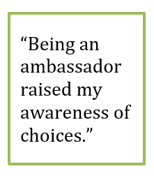 Being an ambassador has raised my awareness to the choices I can make in my everyday life and changed my behaviour and purchase decisions. It has also fast-tracked my learning on the subject of sustainable packaging materials.