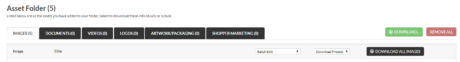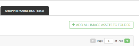 • Sort the items, either through the search function or using the tags system. Once narrowed down, click “Add all image Assets to Folder”, found in the top right corner. (Note, this will add all of the assets in the category tab, if you wish to add multiple forms of media, such as images and videos, you will need to do this on all tabs)