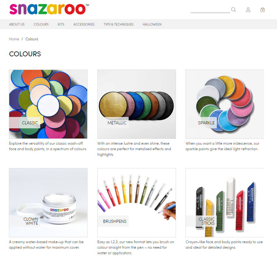Sarah Thabet, Senior Brand Manager for Snazaroo, says “We are so excited about our new and improved website! With a refreshed look & feel and new functionalities, we will offer an enhanced and seamless shopping experience to all Snazaroo lovers. And this just in time for our peak season…Halloween! Also, by making our design more ‘neutral’ and with the addition of a Halloween Adults page, we will appeal to the Gen Z audience which is part of our strategy.