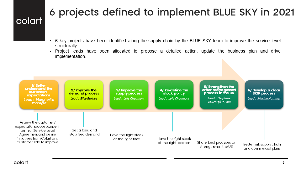 The guests this week included Bruno Lebourdais, Global Supply Chain Director and the team (Marine Hammer, Loic Chaumont, Elise Barbot, Delphine Vaucois, and Margherita Imburgia) to present the Blue Sky Programme. The reality is that they are around 18 people focusing on different challenges, but the programme has been split into six main areas (projects) led by the project leads mentioned before, which you can view in the image below. Each project lead provided a detailed overview of the challenges and successes of their project responsibilities.