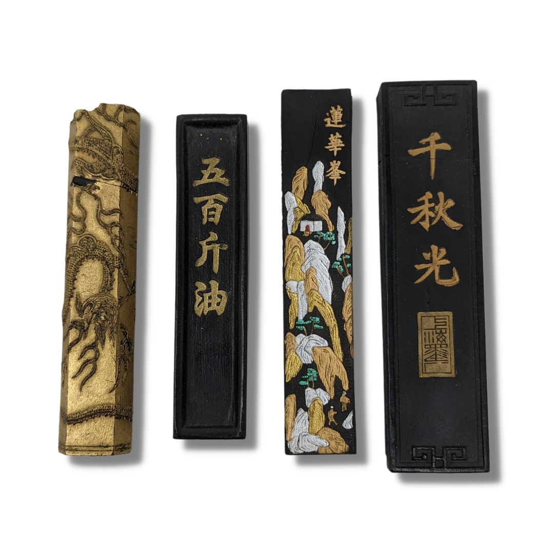 Who doesn’t love a good mystery? These lightweight and delicate, yet sturdy, shapes look like small black lacquer sculptural objects - but these are Chinese ink sticks! It is hard to imagine that such beautiful objects are meant to be ground down until they disappear, but it’s true.