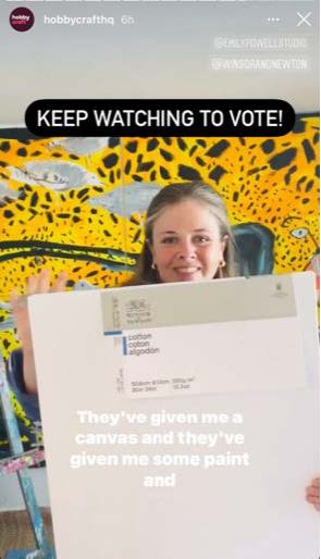 Hobbycraft Instagram story takeover with a voting element for the canvas painting.